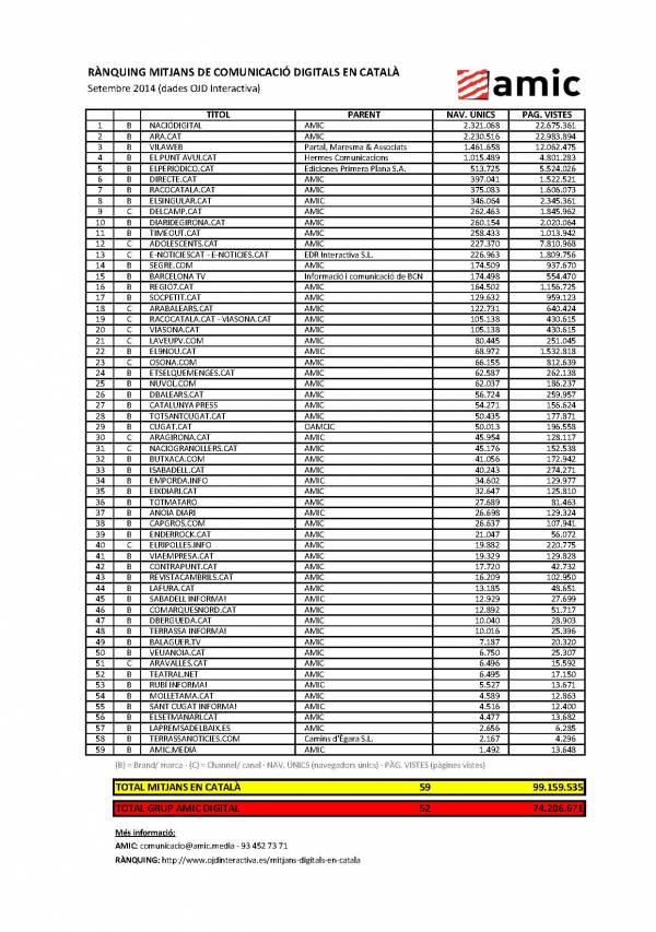 RÀNQUING MITJANS DIGITALS DE COMUNICACIÓ EN CATALÀ