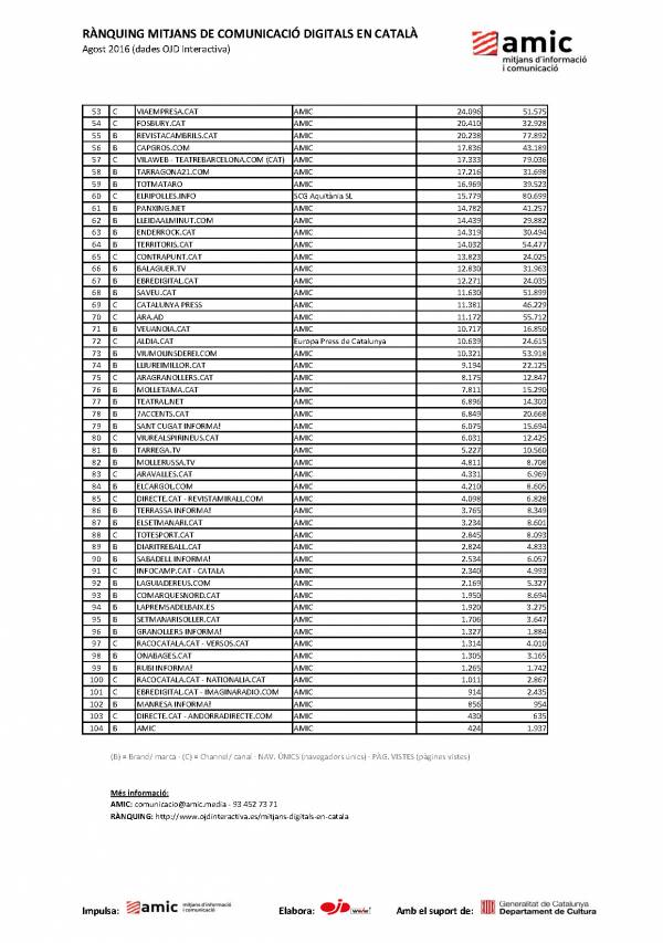 RÀNQUING MITJANS DE COMUNICACIÓ DIGITALS EN CATALÀ
